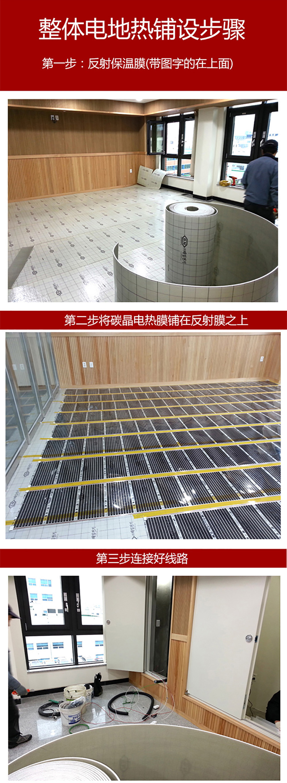 產品特點:散熱均勻;遠紅外輻射熱;鋪設簡易